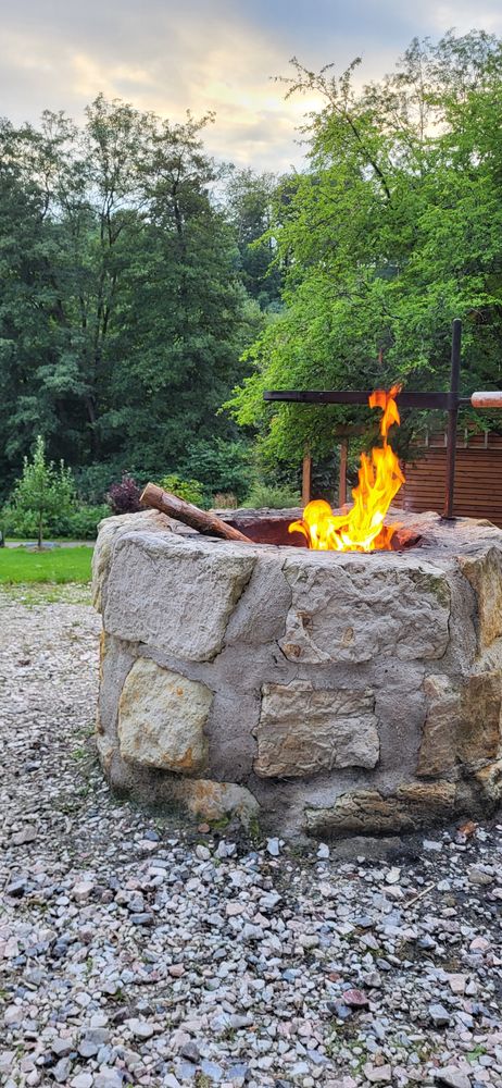 Kromě plynového grilu se můžete těšit i na otevřené ohniště s grilem, které dodá vašemu jídlu vůni kouře.